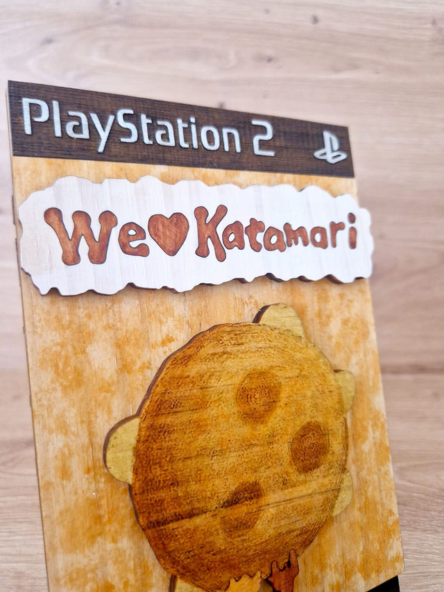¡Lleva a casa un pedazo de nostalgia y celebra el encanto de We Love Katamari con esta hermosa carátula de madera!