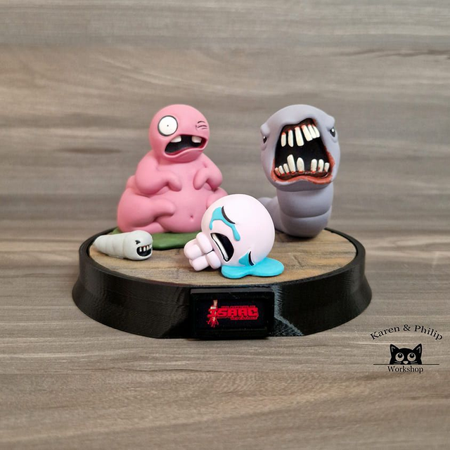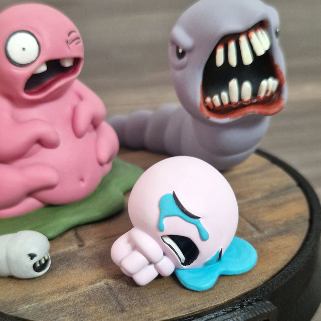 Descubre esta impresionante figura de resina que captura la esencia de The Binding of Isaac en todo su detalle. La pieza representa a Isaac, el protagonista del juego, en su icónico sótano, rodeado de los monstruos que lo acechan. Cada elemento ha sido cuidadosamente pintado a mano, lo que le da un acabado único y lleno de personalidad.